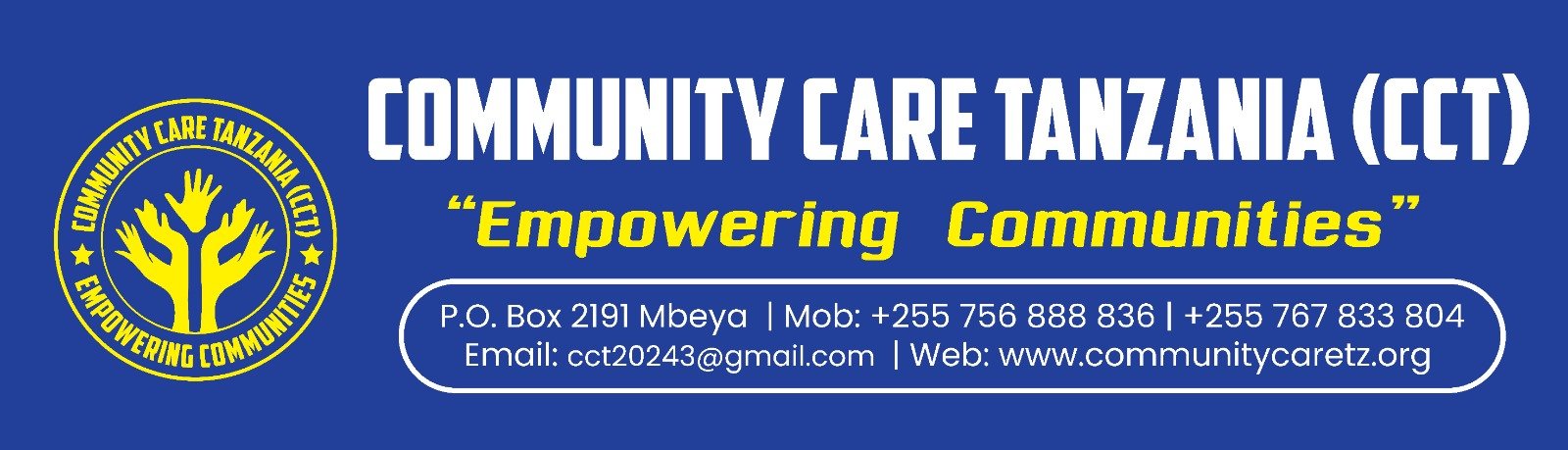Community Care Tanzania (CCT) is a registered Non-Governmental Organization (NGO) dedicated to empowering communities to improve their health, livelihoods, and social well-being. We operate under registration number 00NGO/R1/00344.